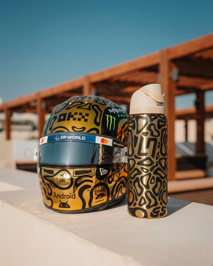 The LN1 Limited Edition bottle channels Lando Norris’ iconic helmet design into a sleek, performance-ready hydration essential built for fans who move fast.